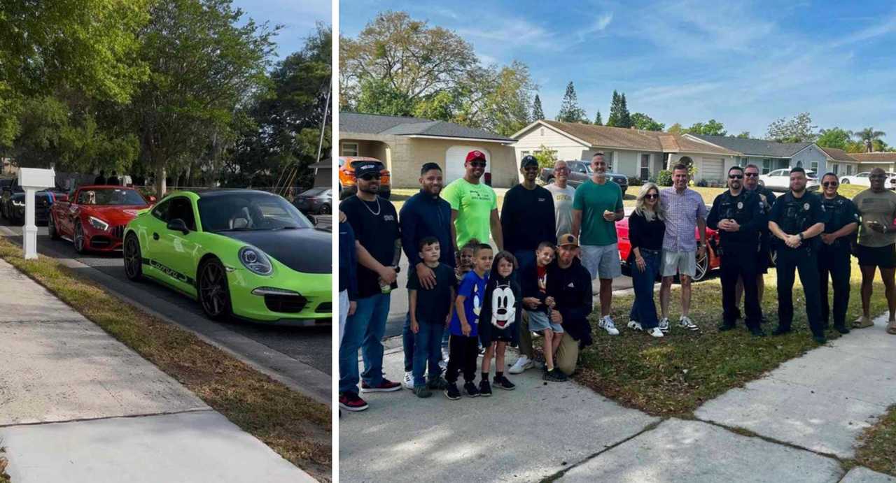 Talk about a birthday bash: About a dozen high-end cars arrived on their street to celebrate Kosta's big day. Many were coordinated by local car enthusiast Mike Mallozzi, who saw the post and started gathering fellow drivers.