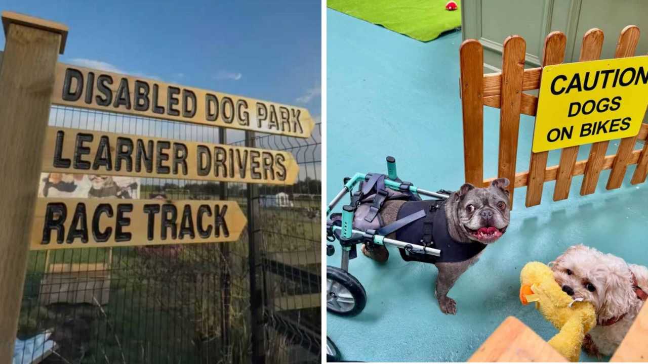 A bunch of dogs on wheels who have the zoomies. UK non-profit organization Broken Biscuits just opened what’s believed to be the world’s first disabled dog park, featuring seven sprawling acres for all Ferrari-Fidos to run and play freely.