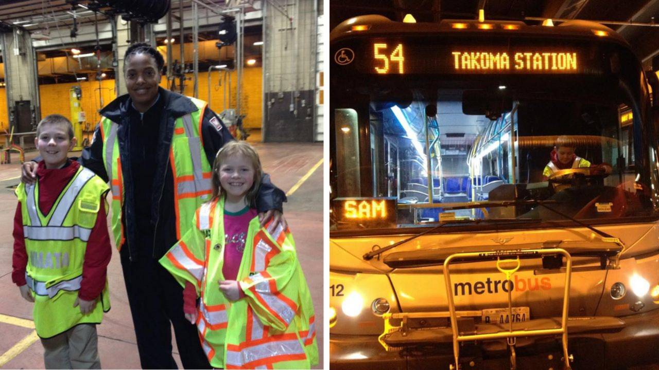 One day, she asked Sam if he and his family would like a tour of the bus garage, and he jumped at the chance.