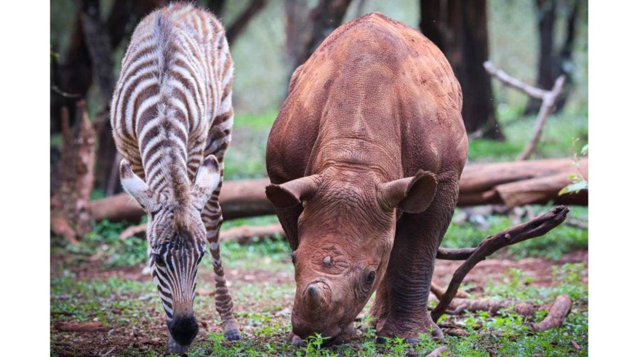 An orphaned rhino calf and baby zebra both arrived at the Sheldrick Wildlife Trust's nursery in Kenya within a week of each other. Since then, the two animals have found comfort in each other while they build up the strength and skills to return to the wild.