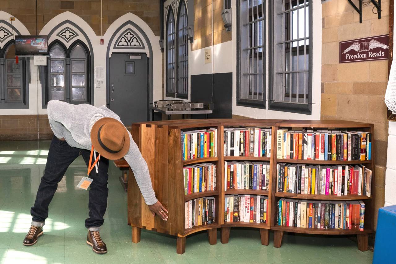 Above all else, the project’s guiding principle is joy. Freedom Reads also employs formerly incarcerated people to build the libraries, which are made of warm, solid wood and designed to invite conversation over literature.