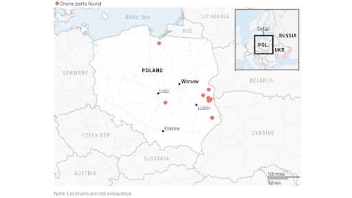 Why did Russia provoke NATO? The drone incursion was likely meant by Russia as a test of NATO’s response and resolve, four senior European officials told the Wall Street Journal. However, some officials acknowledged that the drones may have entered Poland’s airspace because they veered off-course from neighboring Ukraine due to malfunctions or electronic warfare/jamming.