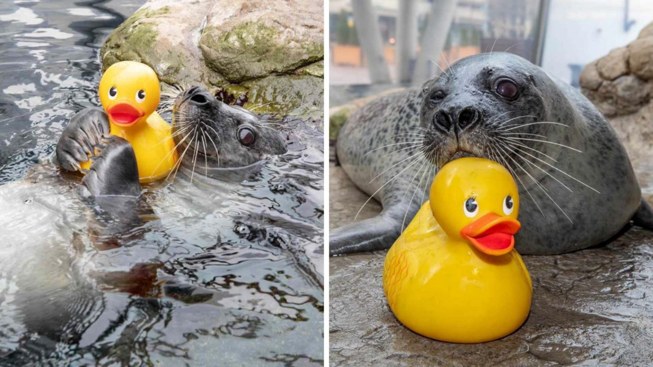 🤗 Daily Dose of Positive |  |  Images: New England Aquarium | 👆🦭 Reggae is a 33-year-old harbor seal at the New England Aquarium who's recently gone viral for his obsession with a rubber ducky. |