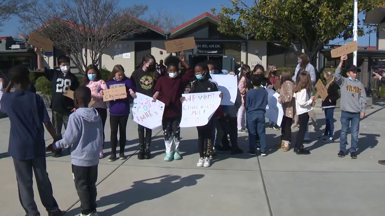 The correct answer is #1, "Students begin protest after chocolate milk is banned at school."