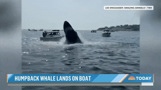 - ☝️ What appears to be a humpback whale breached and landed on the bow of a boat in Plymouth, Massachusetts, on Sunday. Local officials said no one was injured and the boat wasn’t seriously damaged.
