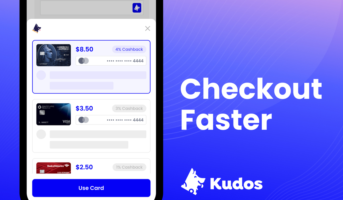 No more struggling to pick out the right card for a purchase, and no more missing out on those credit card perks. Kudos automatically suggests the best card for your purchases.