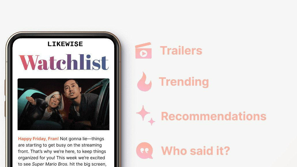 👋 Say goodbye to decision fatigue, and hello to entertainment bliss with the Likewise Watchlist newsletter! They get to know your preferences, then tailor their recommendations to you so you'll always have something great to watch.