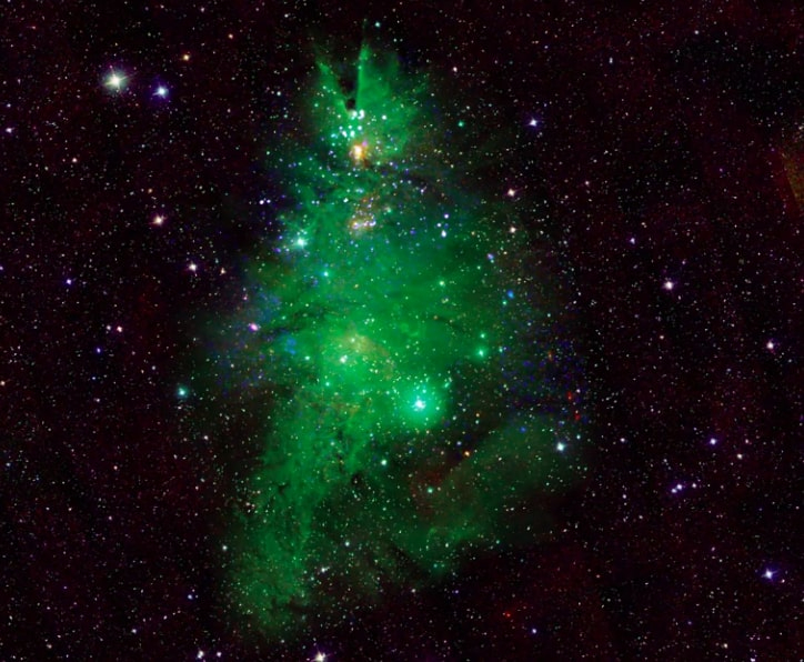 - 👆 NASA published a new image of the “Christmas Tree Cluster,” a group of young stars located in the Milky Way about 2,500 light-years from Earth.