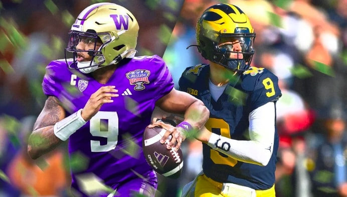 The big business of college football |  Images: Brian Rothmuller/Icon Sportswire | Ryan Kang/Getty | The final game of the College Football Playoff kicks off tonight, with No. 1 Michigan and No. 2 Washington each looking to clinch their first national championship in over two decades.
