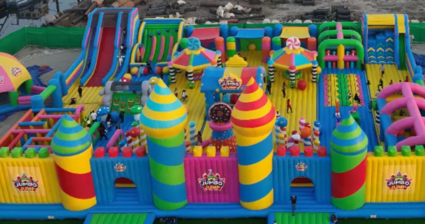 | "Jumbo Jump" in Karachi, Pakistan just claimed the coveted title of the world's largest inflatable bouncy castle.
