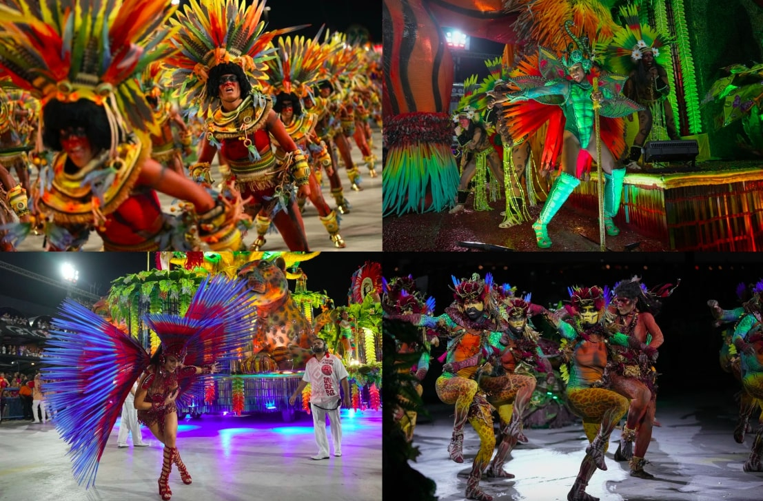 Our daily hot girl walk around the world |  Images: Silvia Izquierdo/AP | 🇧🇷 Participants at Brazil’s Carnival parade protested illegal mining on Indigenous land in the Amazon. Performers painted “Miners out” across their drums and performed dances depicting the struggles of natives at Brazil’s ongoing Carnival parade (known as the world’s largest party). President Lula declared a public health emergency over the effects of illegal mining a year ago, causing an ~85% drop in such illegal activity – but local residents say miners are beginning to return.