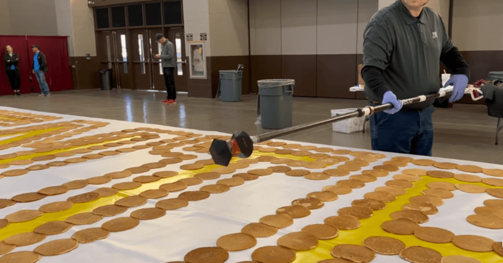 The small town of Liberal near Wichita, Kansas, certainly did. Hoping to break two pancake-themed world records in honor of the holiday, the town used 120 feet of tables to lay out 900 feet of pancakes.