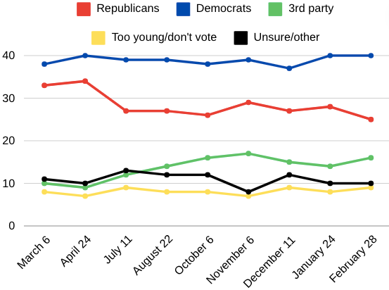 📊 Poll Results |  |  Note: Dates on x-axis aren’t spaced exactly apart | Yesterday, we covered the GOP and Democratic primaries in the swing state of Michigan, which could give us a better look into what’ll happen in November.