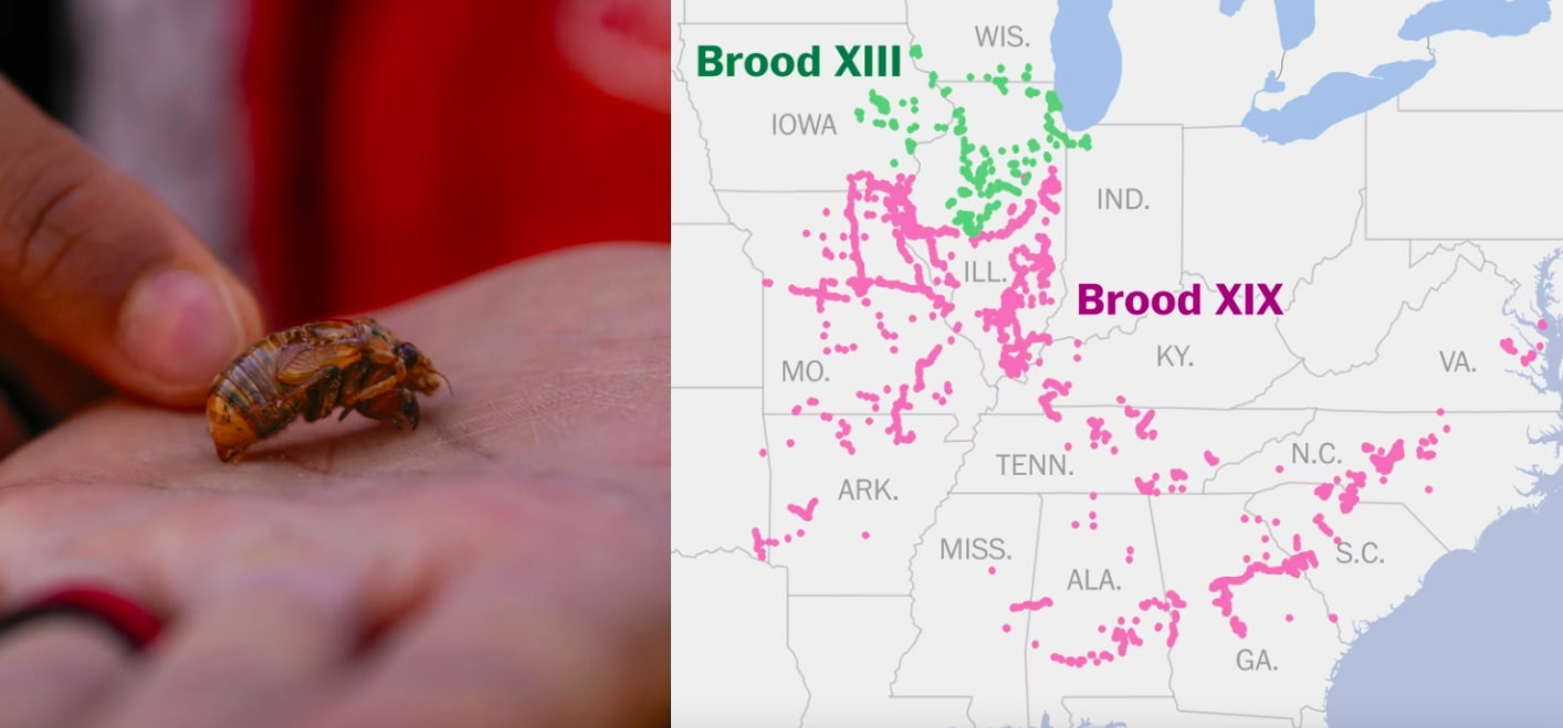 The cicada-pocalypse has begun |  Images: Carolyn Kaster/AP | WaPo | Sound the alarm: trillions of periodical cicadas have begun to emerge in the Southeast and Midwest US. However, on second thought, the insects seem to have that sounding thing covered – their initial cries are so loud that some South Carolina residents are calling their local sheriff’s office asking why they can hear sirens or a loud roar. What’s going on? Two different cicada broods – one that lives on a 13-year cycle, and another that lives on a 17-year cycle – are emerging at the same time this spring, marking a rare synchronized event that last occurred in 1803 (when Thomas Jefferson was president). Cicadas are notoriously loud, aka the Type-A personalities of the insect world. Their collective songs can clock in at 90 decibels, similar to a loud lawn mower or motorcycle, with scientists who study them often wearing earmuffs to protect their ears. - Outside of potential hearing damage, however, the insects don’t pose any danger to humans or pets – though up to 10% of cicadas are affected by a fungal STD that turns them into zombies who infect others of the same species.