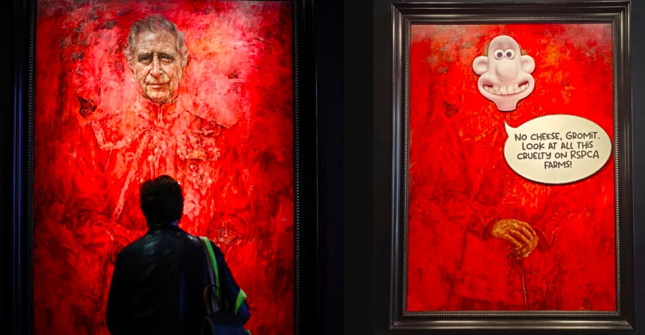 💬 Overheard |  |  Images: Henry Nicholls/AFP/Animal Rising | “With King Charles being such a big fan of Wallace and Gromit, we couldn’t think of a better way to draw his attention." - Much like a visiting foreign dignitary, Animal Rising, a UK animal-rights protest group, is playing to the personal interests of King Charles III in an attempt to spur favorable political action – though their approach is decidedly less diplomatic. Yesterday, Animal Rising vandalized the first completed portrait of the UK king by sticking Wallace and Gromit-themed posters to its protective glass, in a demonstration aimed at drawing attention to what Animal Rising describes as "awful suffering” across farms endorsed by the Royal Society for the Prevention of Cruelty to Animals (RSPCA). While Animal Rising is urging King Charles to suspend his royal patronage of the RSPCA, the charity group itself denies claims of impropriety, saying its efforts are “the best way to help farmed animals right now.”