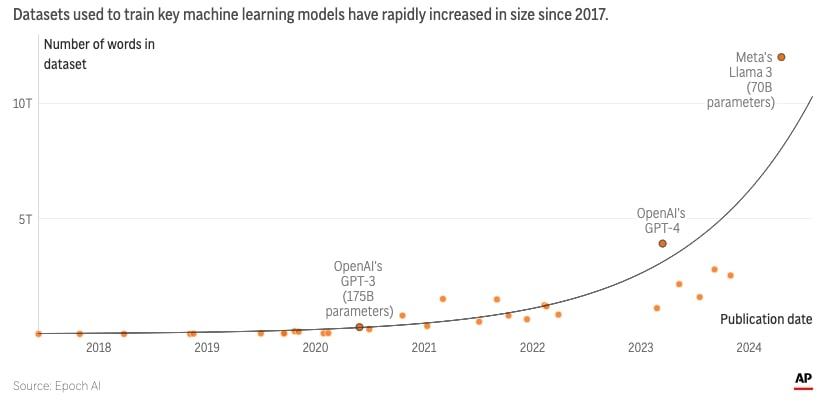 Why is human-generated data so important? Researchers have consistently found that training AI systems on AI-generated (or βsyntheticβ) data causes the modelβs output quality to worsen. Scientists liken this phenomenon to a game of telephone, where the original information is often distorted during the process. Yes, but: Despite the known flaws in using synthetic data to train AI systems, many companies still see potential in this approach. Nvidia last week unveiled a new platform called Nemotron-4, which the tech giant says can create robust synthetic training data for AI systems in place of human-generated content. π Looking aheadβ¦ In the short term, major AI players appear focused on securing high-quality sources of human-generated data to train their large language models. See: recent licensing deals with Reddit, the Associated Press, and News Corp. - In the longer term, analysts predict the industryβs current development trajectory β increasing the amount of human-written training data fed into models by a factor of 2.5x/year β will experience significant slowdown, since companies will eventually run out of new blogs, books, news articles, and social media posts to use for AI training.