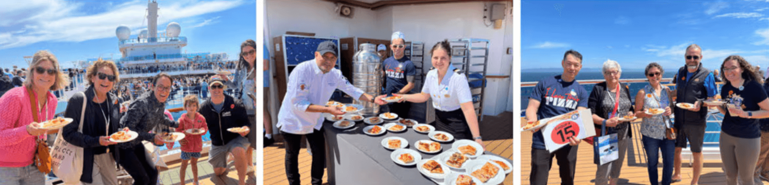 🤗 Daily Dose of Positive |  | Pizza at sea |  Image: Princess Cruise Lions | Princess Cruises is widely regarded as having the best pizza at sea. The company took their title and ran with it last week, hosting the world's largest pizza party at multiple venues across their fleet of ships. Cheese or pepperoni? The global pizza party consisted of 60,000+ slices of pizza served on ships to hungry guests. The event was in celebration the company's new partnership with Chef Tony Gemignani, the 13-time World Pizza Champion. 🍕 By the numbers: The record attempt required roughly 6,500 pounds of dough, 3,400 pounds of flour, 1,400 pounds of pepperoni and 2,300 pounds of cheese. |