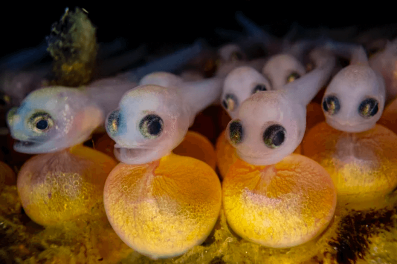 🤗 Daily Dose of Positive |  | 🐠 Squishy fishies |  Image: Shane Gross | 105 photos have been chosen as finalists for the Ocean Photographer of the Year competition, beating out ~14,900 other submissions from around the world. 🌊 The great blue sea... The finalists include: an octopus sheltering in a plastic bag, a shot of scientists performing an ultrasound on a female tiger shark, a jackfish hiding inside a jellyfish, a group of baby plainfin midshipman still attached to their yolk sacs (☝️), and more. |
