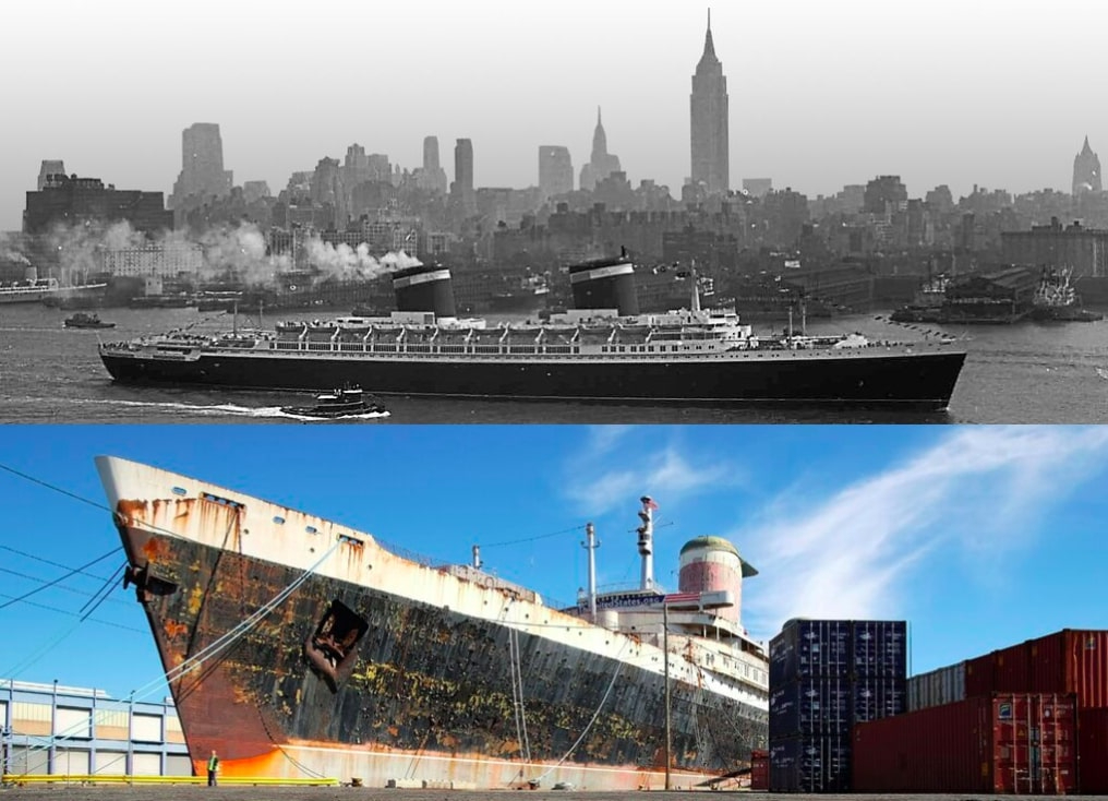 |  S.S. United States at its first voyage in 1952 (top), and present day (bottom); Images: Jewel Samad/AFP | Jack Harris/AP | 🚢 A historic ship is poised to become the world’s largest artificial reef. The S.S. United States, a 92-year-old ocean liner 100+ feet longer than the Titanic that once ferried immigrants, Hollywood stars, and heads of state, may soon be sent to its final resting place – the bottom of the Gulf of Mexico, where it would serve as Earth’s biggest artificial reef. Last week, the government of Okaloosa County, Florida, signed a tentative deal to buy the ship for $10+ million, with plans to sink the vessel over an 18-month period once the sale is finalized. |
