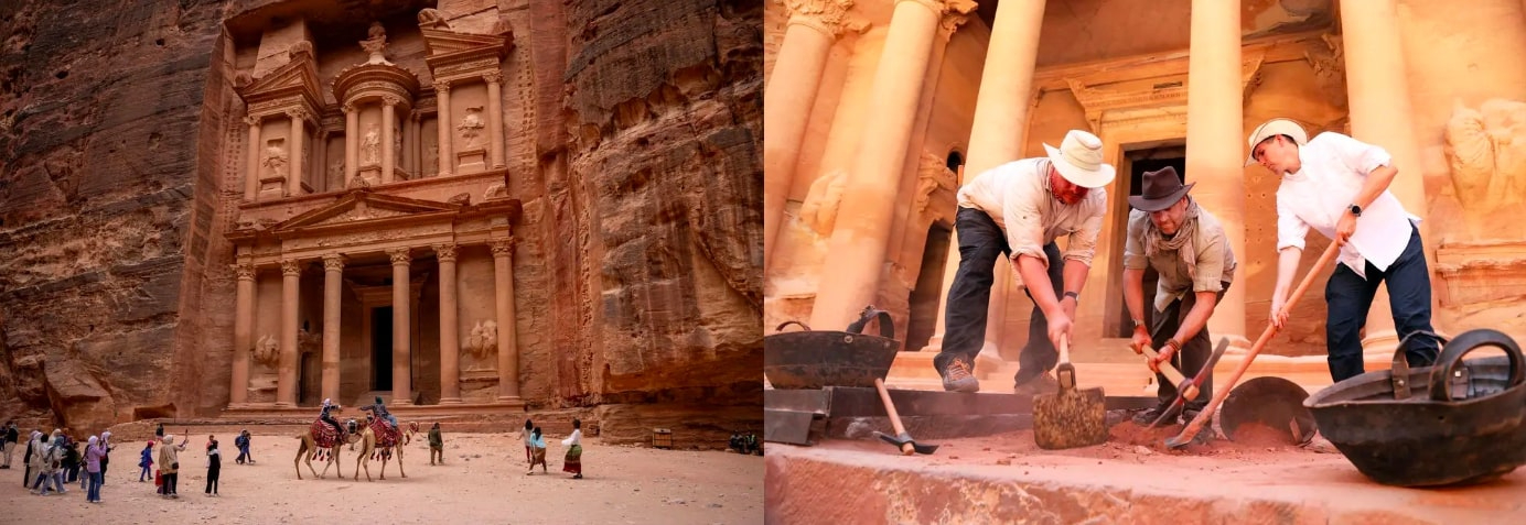 |  Images: Stelios Misinas/Reuters | Discovery's Expedition Unknown | 🇯🇴 A hidden tomb was discovered underneath the ruins of Petra. Located in modern-day Jordan, Petra is an ancient city carved 2,000 years ago from the walls of a desert canyon. It’s a UNESCO World Heritage Site, and one of the New 7 Wonders of the World. Archaeologists recently uncovered a tomb beneath the Treasury – a landmark seen in Indiana Jones and the Last Crusade – containing 12 full skeletons, the most ever found at Petra. |