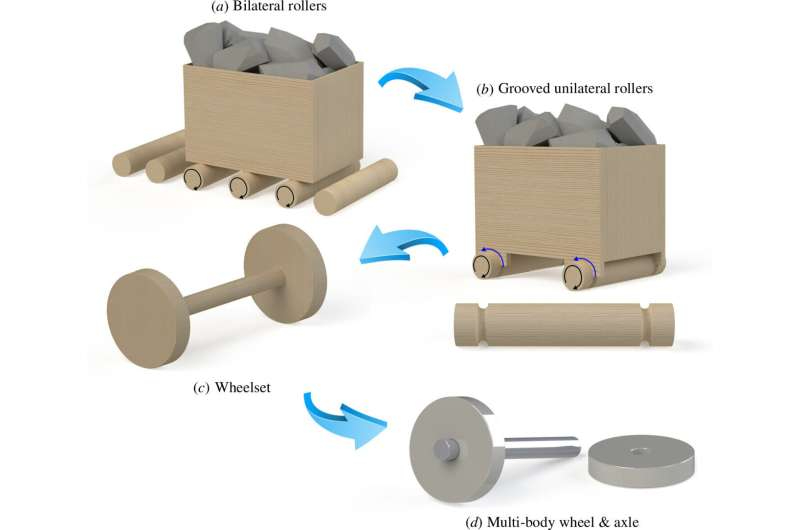 |  Image: Lee R. Alacoque et al. | 🛞 Scientists modeled how humanity may have first started using the wheel. In a new study, researchers propose that humans made three key innovations to the wheel (shown by the arrows☝️) over a period of ~500 years, taking it from essentially tree trunks with their limbs removed to the modern-day version of a wheel. Nobody knows for certain who invented the wheel, or when it was first used, but historians do know the wheel was widely used around the world as early as 3000 BC. |