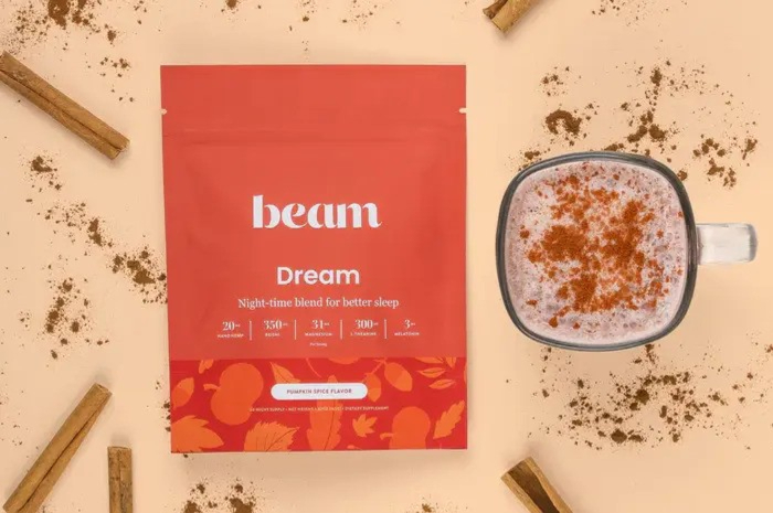 | We spend nearly a third of our lives sleeping—or at least trying to. When you can’t fall asleep, the impact is harsh: grogginess, irritability, and lack of focus. But Beam Dream is here to transform restless nights into restful sleep. - Packed with 5 powerful sleep-promoting ingredients (CBD, reishi, magnesium, L-theanine, and melatonin), simply mix one scoop of Dream with hot water or milk, sip, and let the natural goodness do the rest.
