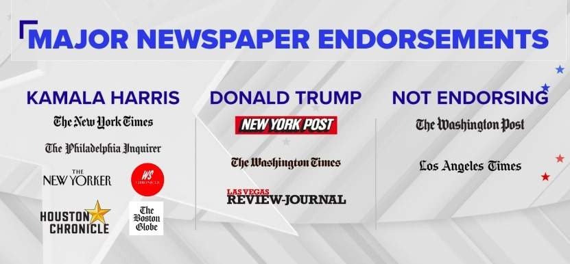🗣🌐 Dose of Discussion: A 360° Look at a Hot-Button Issue |  | Should newspapers endorse presidential candidates? |  Image: NewsNation | On Friday, the Washington Post announced it will no longer endorse presidential candidates, ending a practice that stretched back to 1988. WaPo is the second major newspaper to recently decide against making a presidential endorsement, following a similar decision by the Los Angeles Times on Wednesday. - In a note, WaPo publisher Will Lewis said the move represents a “statement in support of our readers’ ability to make up their own minds.” He also stressed that “most of all, our job as the newspaper of the capital city of the most important country in the world is to be independent.”