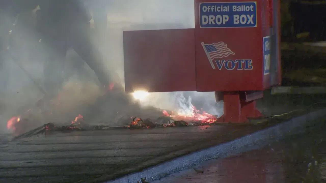 |  Image: Evan Bell/KATU | 🗳️ Ballot drop box fires are under investigation in Oregon and Washington. Two ballot boxes – one in Portland and one in Vancouver – were set on fire Monday morning, possibly destroying hundreds of ballots. Per the AP: Police say material from the incendiary devices show the fires are connected, and authorities have identified a “suspect vehicle” that was seen leaving the scene of the first fire. |
