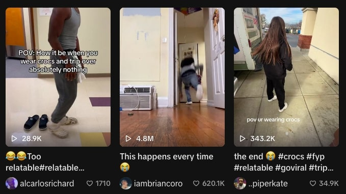 |  Images: TikTok | 🚫 School districts in at least 12 states have banned students from wearing Crocs. Officials say the foam slip-on shoes represent both a distraction for students as well as a safety hazard, with numerous reports of students slipping and falling (inspiring a TikTok trend☝️). The bans come as Crocs has seen its popularity skyrocket in recent years, with the company’s annual sales more than tripling since 2020. |