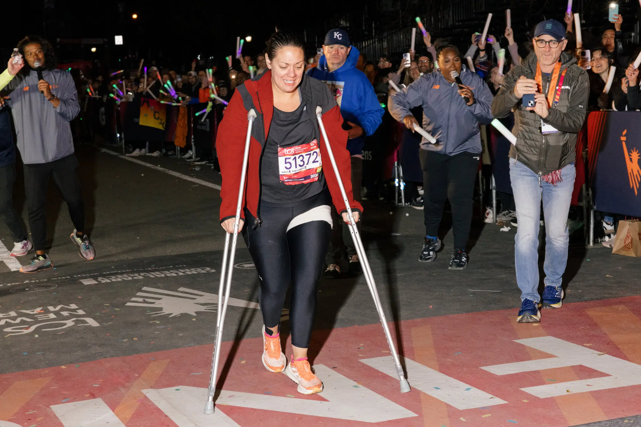 When she finally hobbled over the finish line, Danielle was greeted by a group of people with cowbells, signs, and glow sticks β cheering as her and other slow finishers crossed. π€ What kept her going? βI came too far to quit,β Danielle shared with the NY Times. βI really wanted that medal.β |