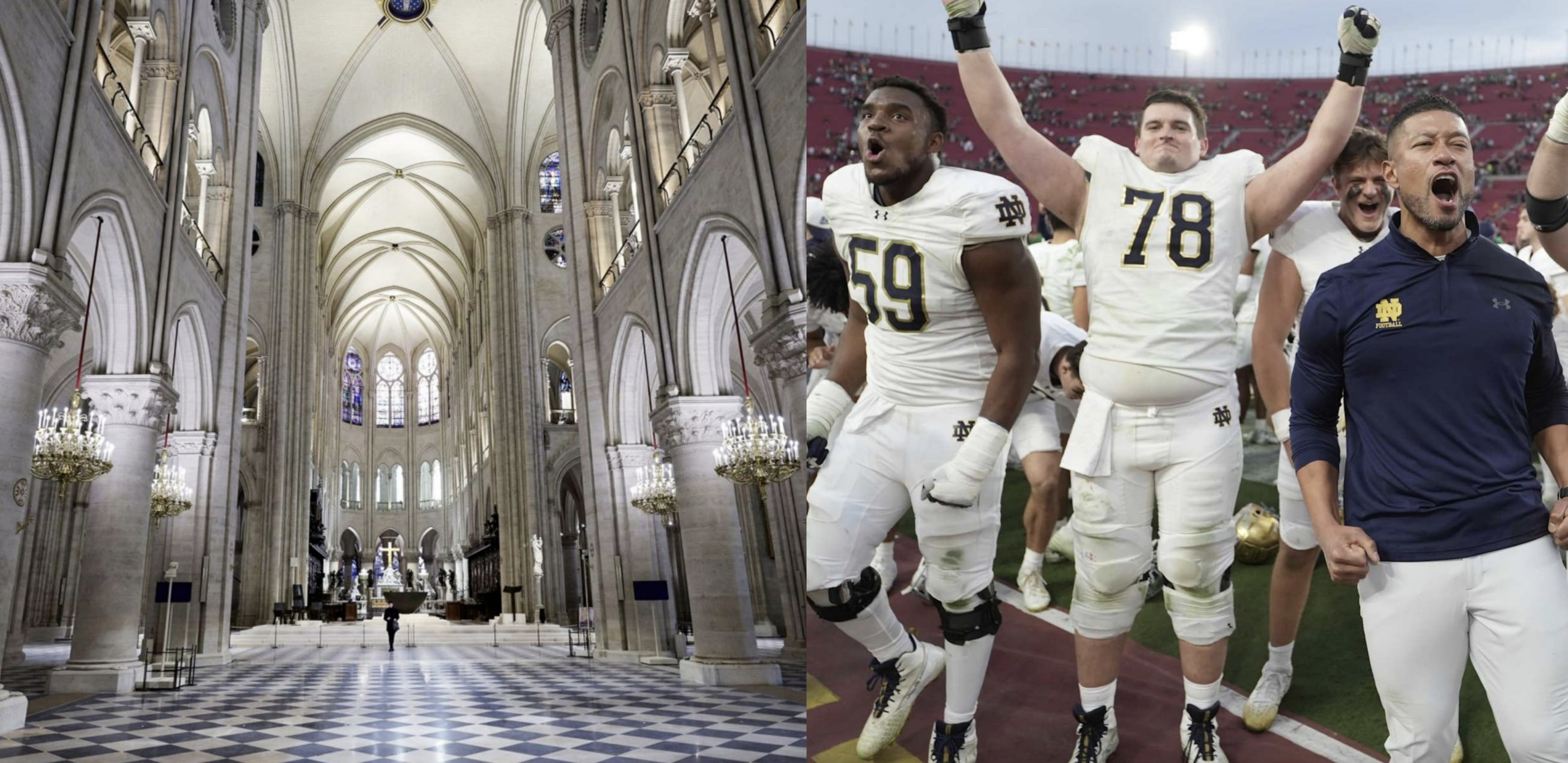 🍩 DONUT Holes |  |  Images: Stephane de Sakutin/AFP | Kirby Lee/Imagn | - ☝️ It was a good weekend to be a Notre Dame fan. On Friday, the world received its first glimpse inside the restored Notre Dame cathedral one week ahead of its official reopening; on Saturday, the #5-ranked Fighting Irish beat USC to close out an 11-1 season and clinch a CFP playoff berth.