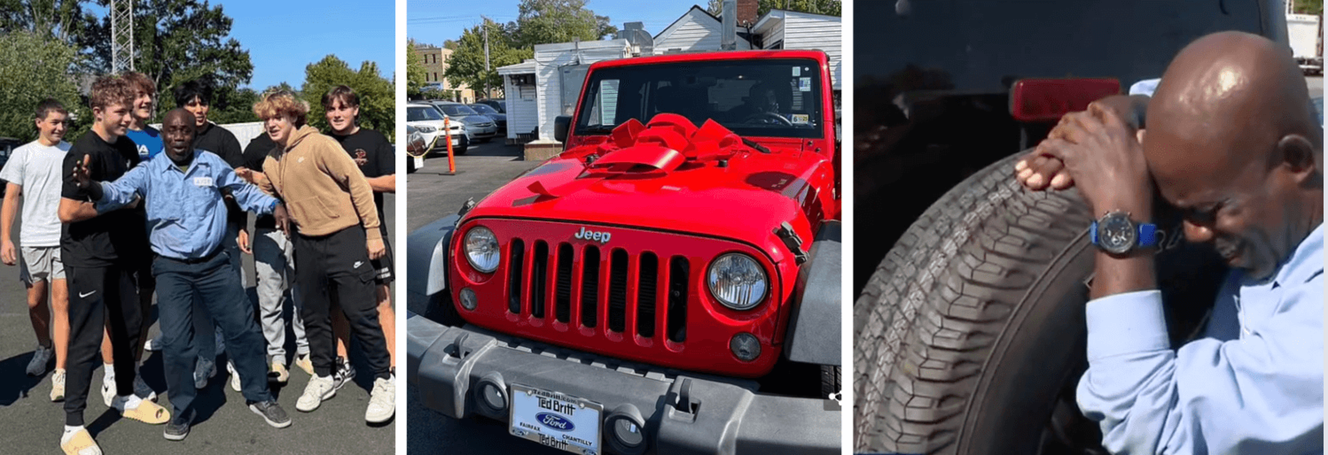 🤗 Daily Dose of Positive |  | 🚘 A jeep for a janitor |  Images: Fox5 | Francis Apraku, a James Madison High School custodian, recently received the birthday surprise of his life. ⏪ Let's rewind...Earlier this year, a group of students heard Francis mention that a Jeep Wrangler was his dream car. Francis is a favorite employee among the students, so a group of freshman boys set up a GoFundMe for him shortly after. They hoped to raise enough money to buy him a Jeep by their graduation in four years – but it only took a few days to reach their goal. - When the boys walked Francis out to the parking lot, it took him a few moments to realize the shiny new jeep with the big red bow was his – before he became visibly moved by the students' gesture.