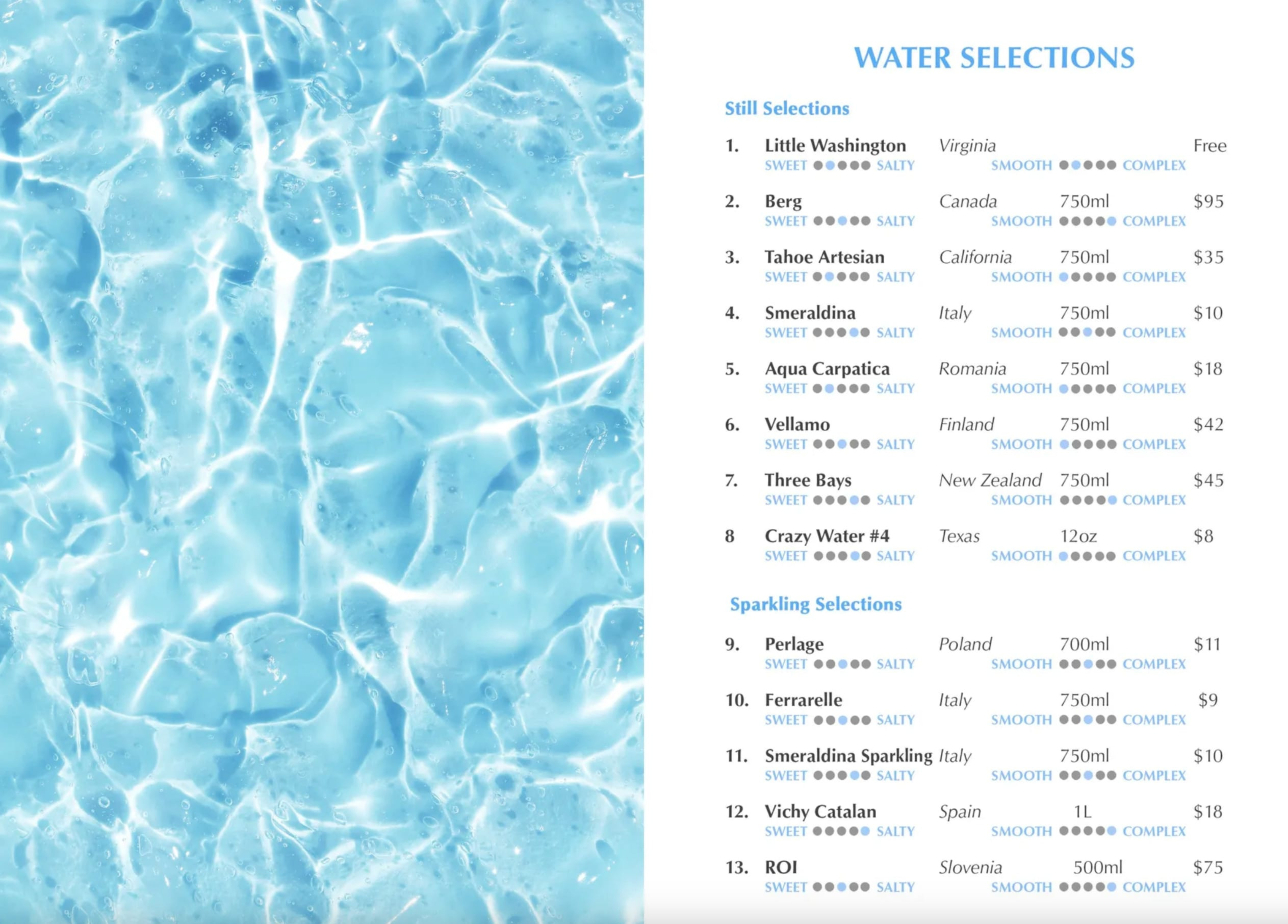 🔥 The Hot Corner |  |  Image: The Inn at Little Washington | 💧 Stat of the Day: The Inn at Little Washington, a three-Michelin-starred restaurant near D.C., has started turning water into wine on a nightly basis. Its new luxury water menu allows guests to pair any of 13 still or sparkling waters with their meals with the help of restaurant wine director Lindsey Fern, who’s currently working on her water sommelier certification (yes, it's a real thing). - Prices range from $0 for Virginia water to $95 for iceberg water – hand-harvested in Canada from 15,000-year-old glaciers that give hints of "ancient packed snow and air,” per Axios D.C.