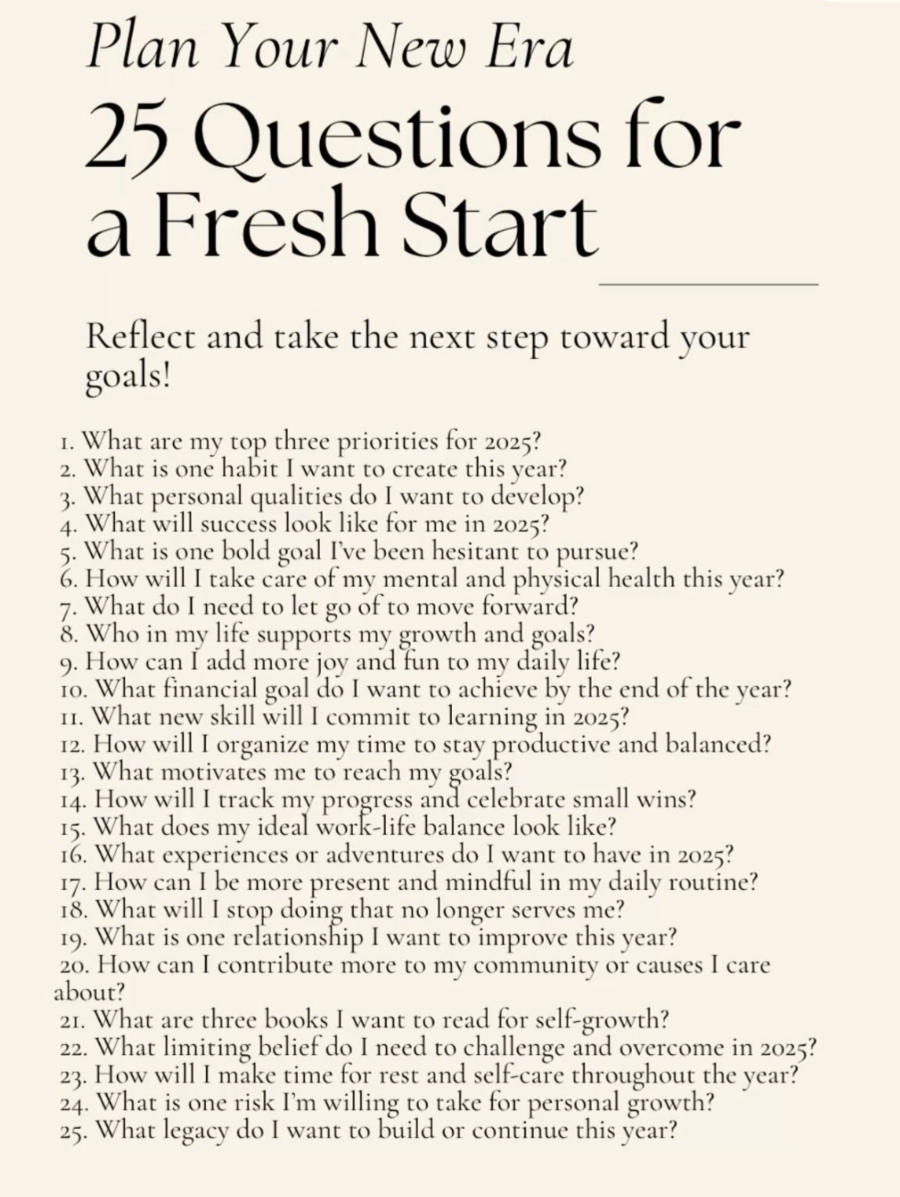 ๐ Mindfulness Moments |  | ๐ New Year, same awesome you | Can you believe weโre already a week into the New Year? The good news โ itโs never too late to do some goal-setting and reflection. I was moving all last week, so Iโll be honest โ I havenโt had a chance to sit down and do it myself. So lets do it together, Positive fam! Take a few moments to think on or journal about the questions below. Feel free to choose your favorite five, or set aside an afternoon to dive into all of them. Letโs start 2025 off on a strong foot! |