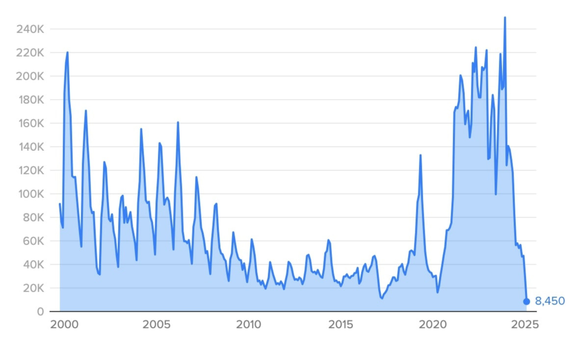 The decline has two main factorsAnalysts say the data can be attributed to both Trump's sweeping changes in immigration policy and rhetoric, along with trends that began months before his second term. After spiking at the end of 2023, illegal border crossings fell in 2024 following new Biden admin restrictions and Mexico ramping up enforcement. Trump has escalated some of these restrictions, with recent moves including empowering US officials to deport migrants without hearing asylum claims, and deploying active-duty troops to the US-Mexico border. Will the data affect US tariffs? Short answer: it’s currently unclear. Stopping illegal immigration is one of the main rationales behind Trump’s tariffs on US border nations Canada and Mexico. But while both countries received a temporary tariff reprieve after enhancing border security last month, analysts are uncertain whether this new US-Mexico border data will influence negotiations. Zoom out: The Trump admin’s southern border strategy has yielded quick results, but its efforts within America are still ramping up. Trump has pledged to deport all ~14 million immigrants living in the country illegally during his second term, and signed several executive orders to that effect. - Over Trump’s first three weeks in office, ICE has arrested ~14,000 unauthorized migrants in the US (pacing at ~250,000/year) – twice last year’s average, but still shy of Trump’s goal (~3.5 million/year).