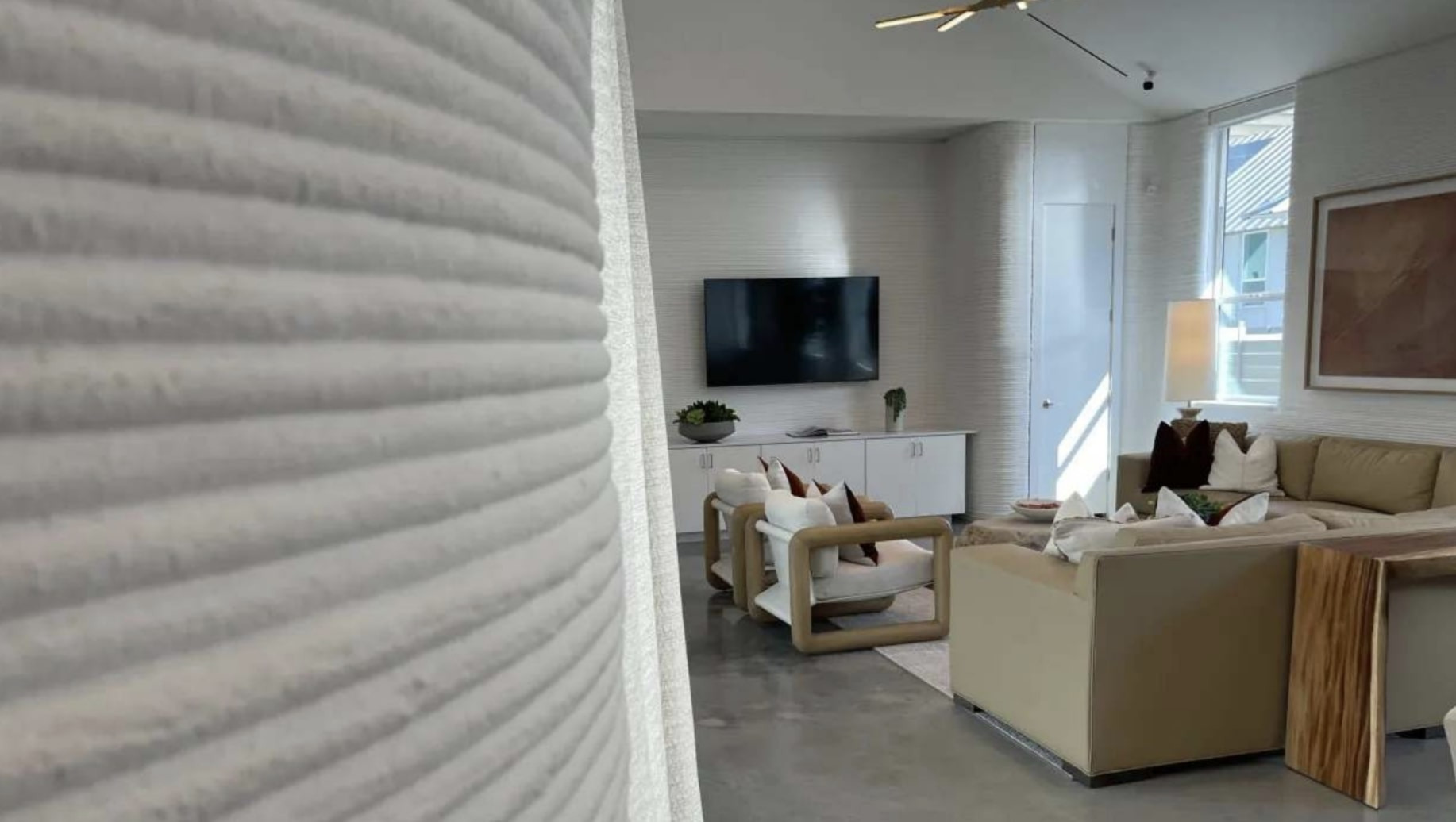 The world’s largest 3D-printed housing community was just completed |  Image: Diana Olick/CNBC | In 2022, Lennar, the nation’s second-largest homebuilder, partnered with Icon, a 3D technology company, to build 100 3D-printed homes in Georgetown, Texas, a city ~30 miles north of DONUT HQ in Austin. This development was recently completed, making it the world’s largest 3D-printed community, CNBC reports. ~75% of the homes – 2- and 3-bedroom models starting at ~$400,000 – have already been sold, per the companies. The process, the process, the processWhile foundations, roofing, and finishes were built and installed traditionally, the walls of each house were constructed by Icon's Vulcan 3D printer, a 45-foot behemoth weighing nearly five tons that takes in raw concrete and spits out a corduroy-looking finished product with no right angles. - The Georgetown project started off using two Icon printers. By the second year, the development was using 11 machines and churning out two homes per week.