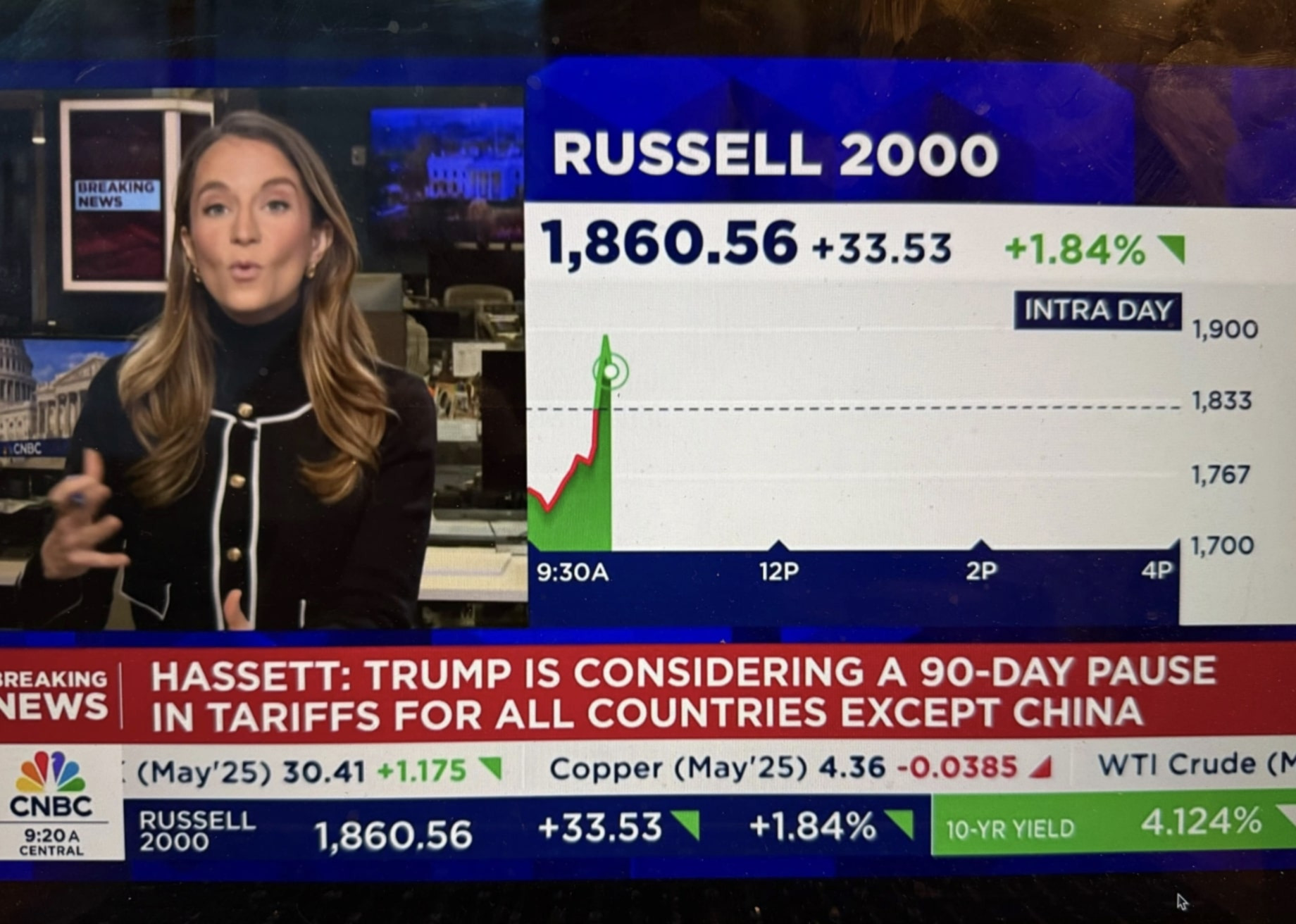 - 10:18 AM: CNBC ran a news chyron at the bottom of the screen with no attribution that indicated Trump was considering a 90-day tariff pause (☝️).