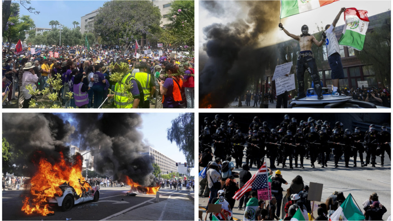 ⏱💥 Speed Rounds: Quick, Impactful Stories |  | Los Angeles saw its fourth day of immigration protests |  Images: Jason Dearen/AP | Brehman/EPA-EFE/Shutterstock | Jae C. Hong/AP | Mike Blake/Reuters | Thousands of people gathered in downtown Los Angeles yesterday to protest against recent immigration arrests by federal authorities, marking the fourth straight day of demonstrations that have frequently turned violent. How we got hereOn Friday evening, Immigration and Customs Enforcement authorities executed search warrants at four areas across Los Angeles, arresting 44 people on alleged immigration violations. - Two such immigration raids drew hundreds of protesters and devolved into violent standoffs between the demonstrators, and federal officials combined with the LAPD.