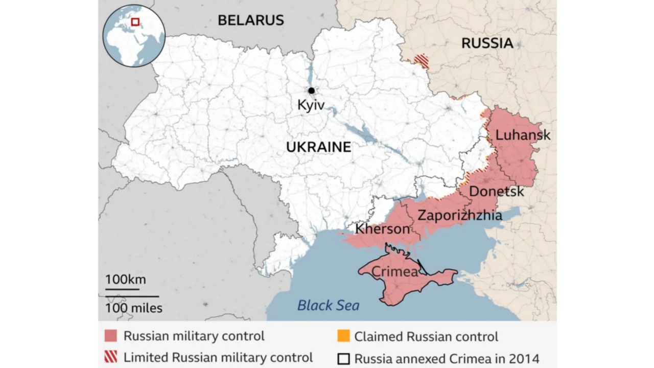 Under Putin’s dealRussia says it will agree to a cease-fire in exchange for Ukraine handing over the remaining ~33% of the eastern Donetsk region that Kyiv still controls. The front line of battle would be frozen elsewhere, including in the Zaporizhzhia and Kherson regions that Russia also claims as its own, but whose capitals are controlled by Ukraine. - Additionally, Putin wants the ceasefire deal to include a promise that the Donetsk, Luhansk, and Crimea regions of Ukraine be recognized globally as sovereign Russian territory.