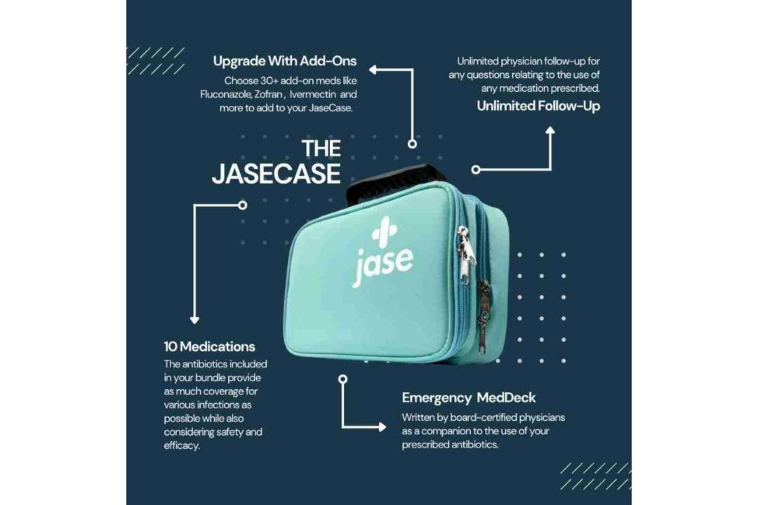 | Guest rooms ready, menu planned, wine stocked—but when a 2 AM fever hits, and the pharmacy is closed, what then? The JaseCase keeps your prescription antibiotics and symptom relief meds on hand, plus board-certified physicians for guidance, so you’re ready for anything the holidays have in store. Five prescription antibiotics plus symptom relief for 50+ infections. Pediatric, Travel, Dental, and more versions are also available. |