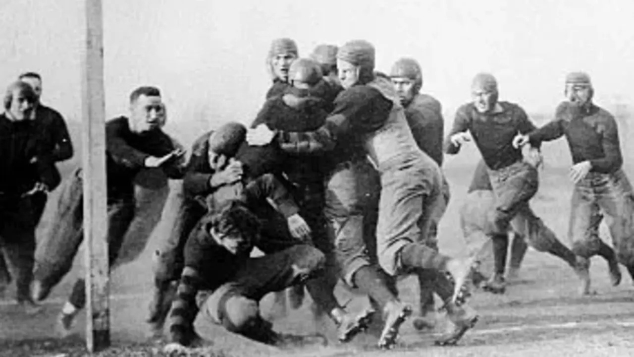 - A) 1869 – Rutgers beats Princeton, 6-4, in the first college football game. Under the rules of the day, carrying or throwing the ball is not permitted.