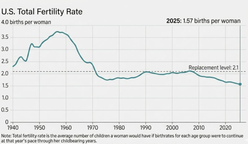 Fertility rates among women in the US fell again in 2025 to reach a new record low, according to federal data published last week.